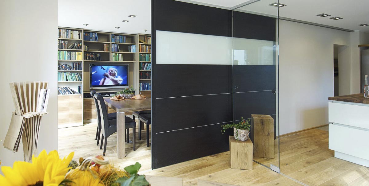 Sie möchten Ihrem Wohnraum eine individuelle und besonders exklusive Note mit maßgefertigten Einrichtungselementen und Möbeln verleihen? Mit unseren Raumteilern lassen sich Wohnideen besonders auch in kleineren Räumlichkeiten verwirklichen. Dank einer offenen Bauweise präsentieren sich viele moderne Wohnräume heutzutage sehr freizügig und augenfreundlich. Der Nachteil einer solchen Raumauffassung liegt oft in den fehlenden Nischen für die Privatsphäre. Für die entsprechenden Rückzugsmöglichkeiten kann hier mit entsprechenden Raumteilern gesorgt werden, welche bei uns in allen Varianten denkbar sind: Rahmen aus Aluminium, aus Holz furniert, in der Vollholzvariante oder ohne Rahmen aus ESG-Glas.